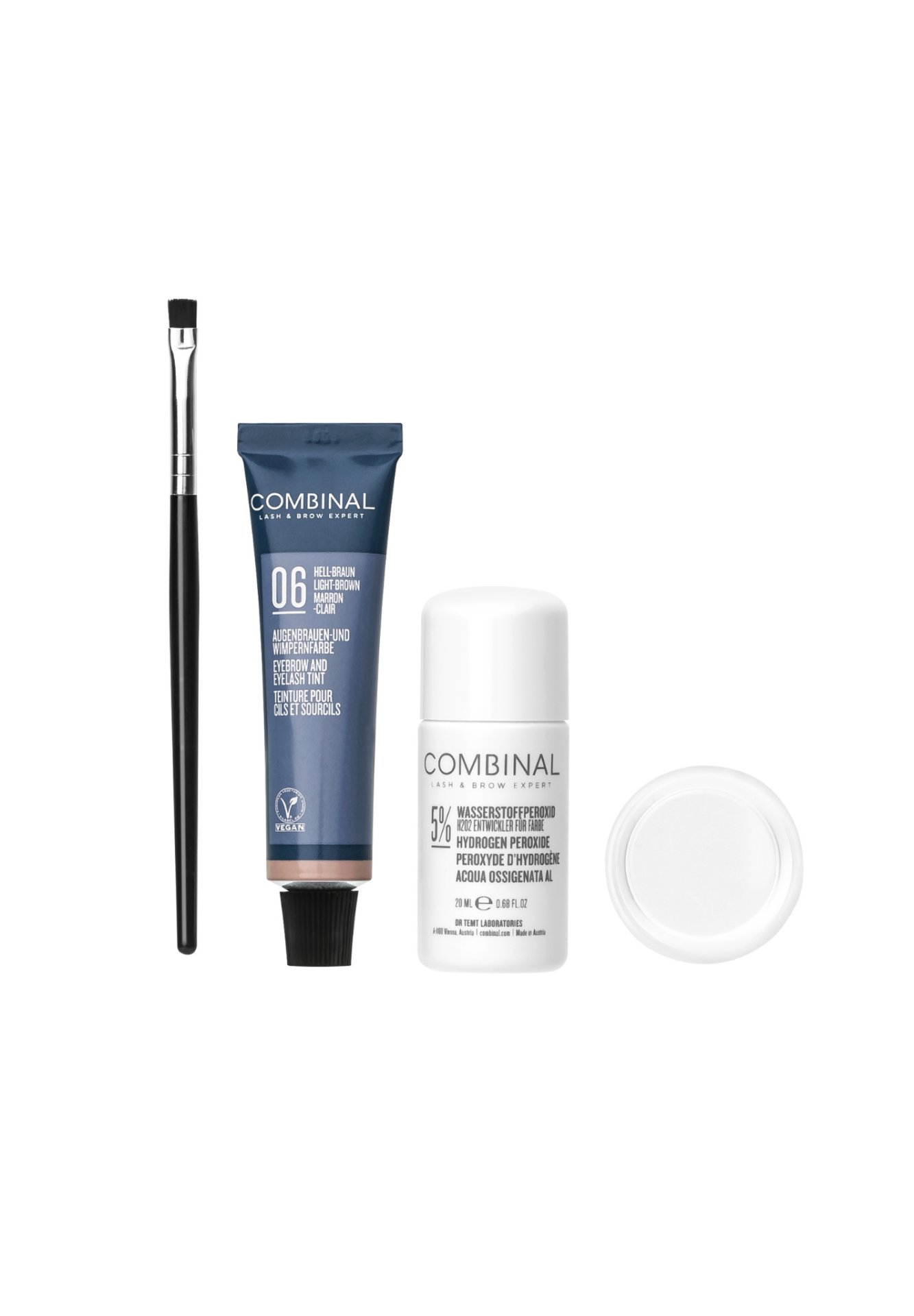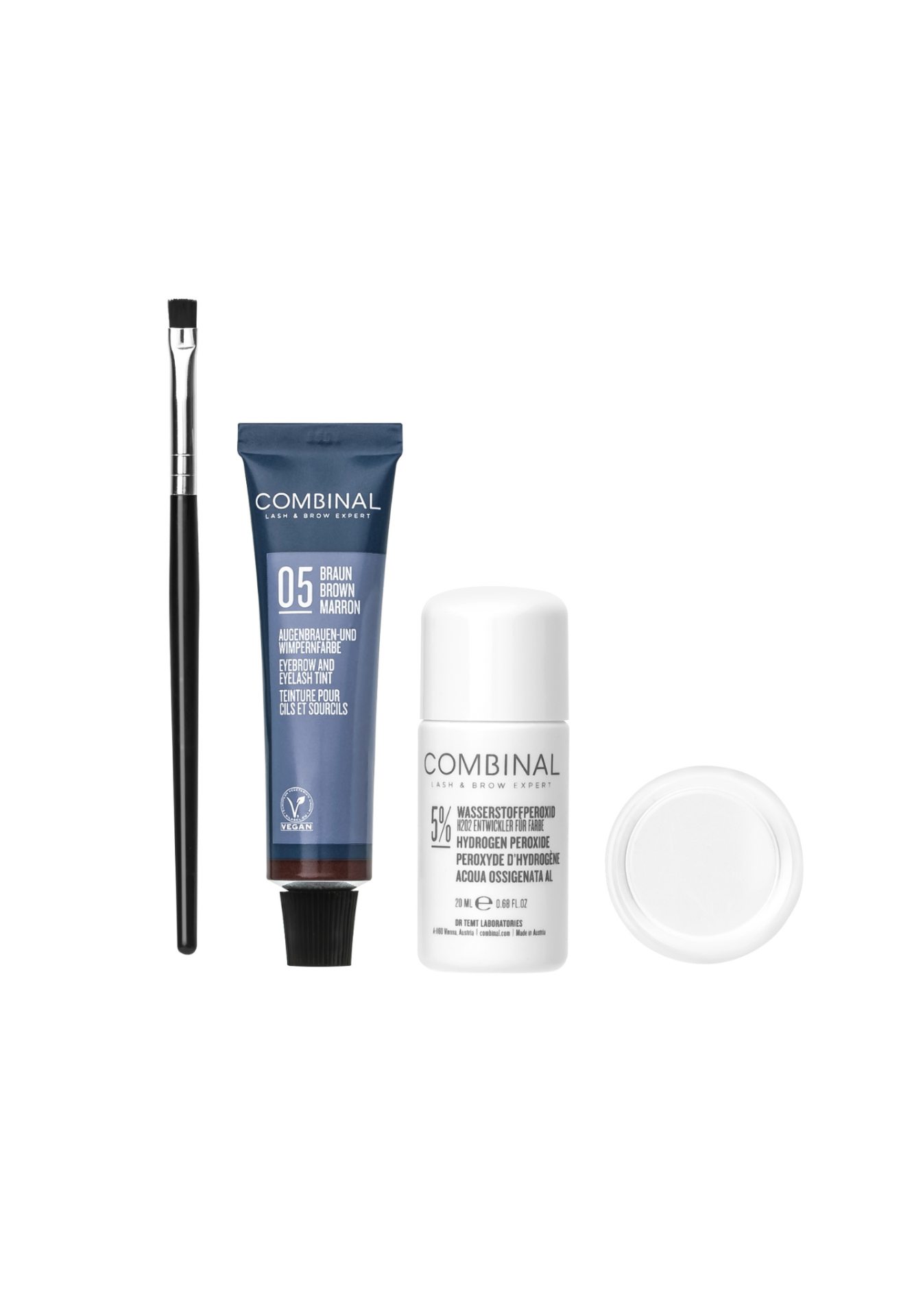 Ce kit comporte l’essentiel pour réaliser une teinture de cils et sourcils.